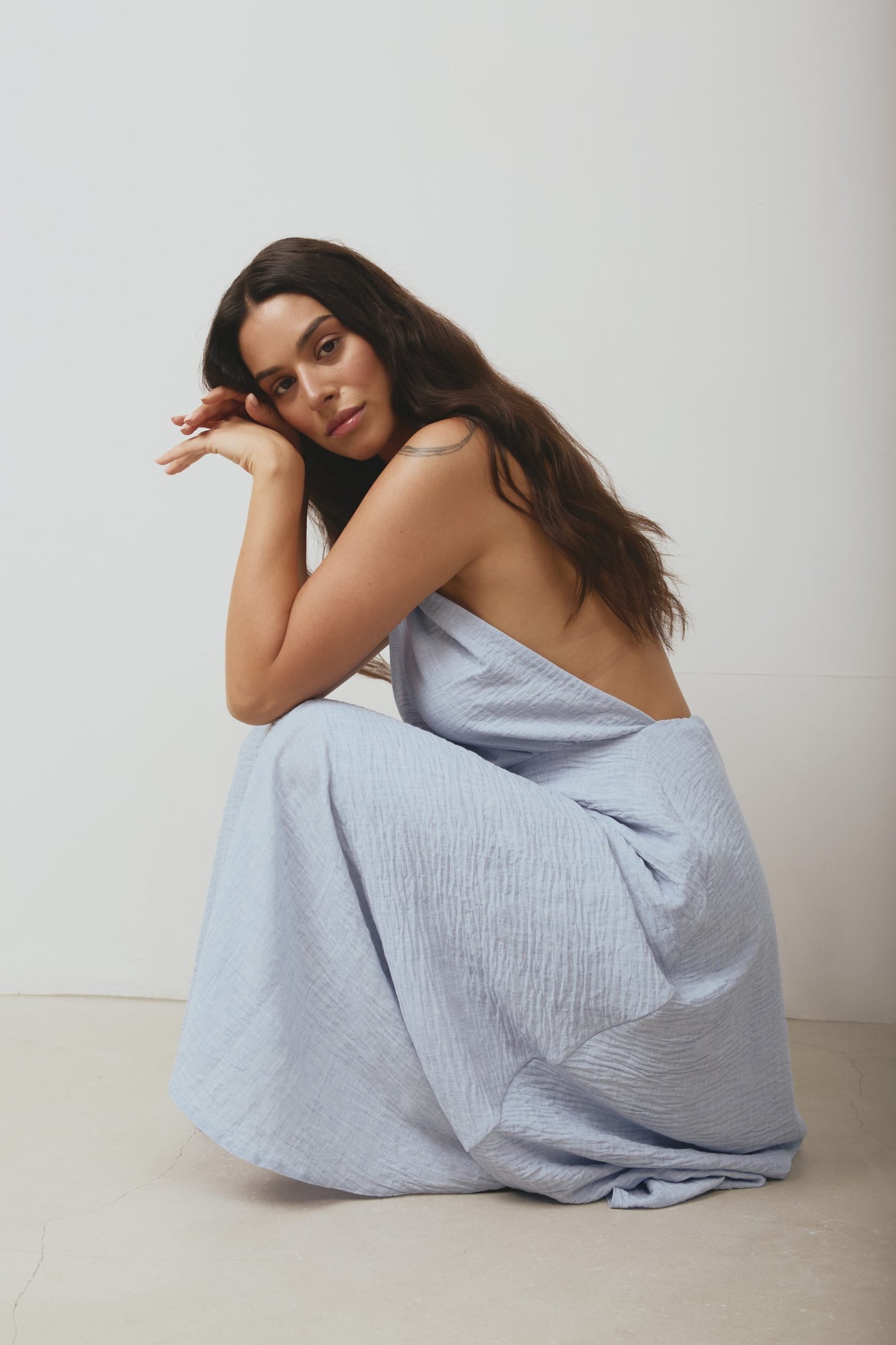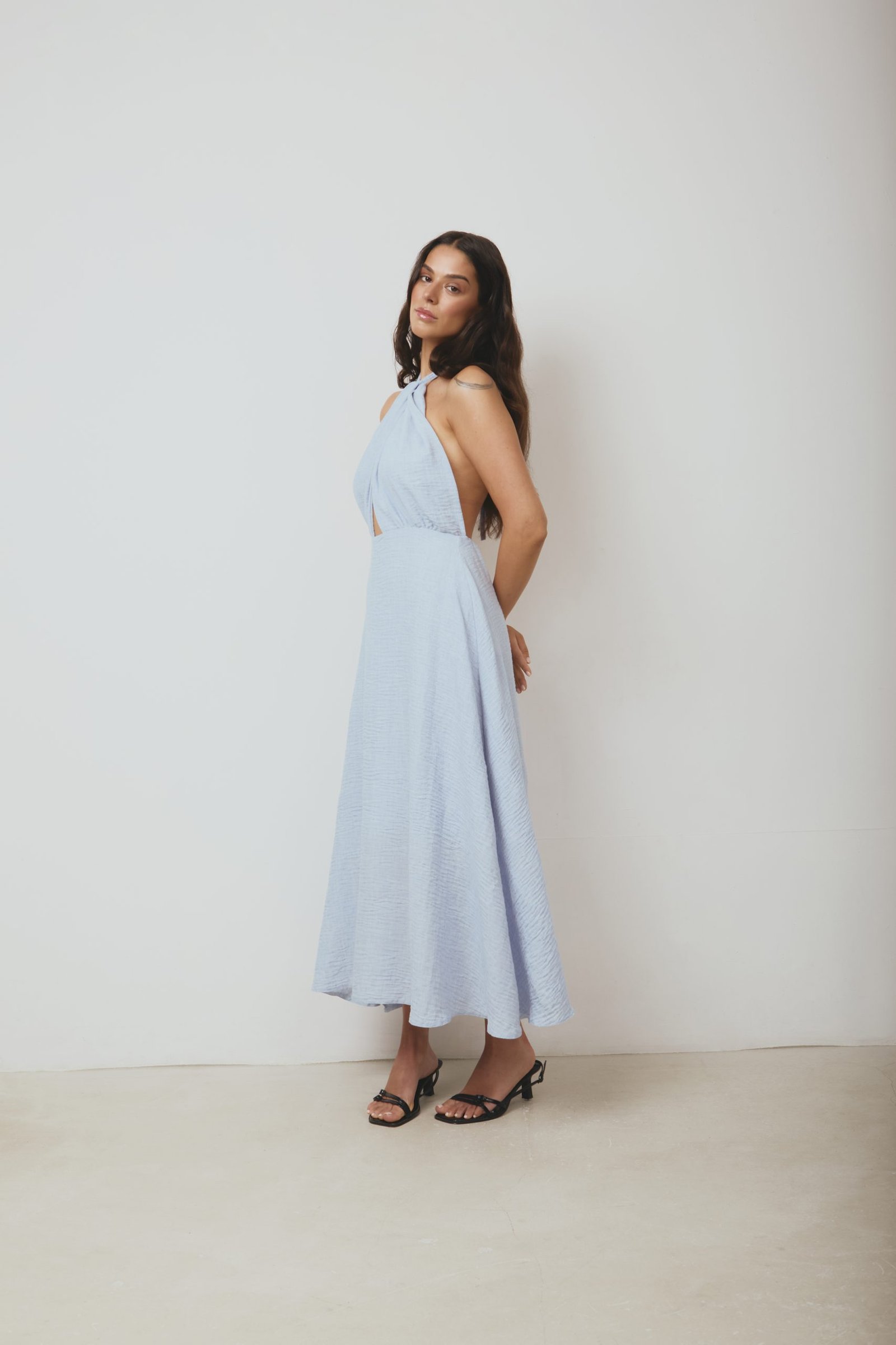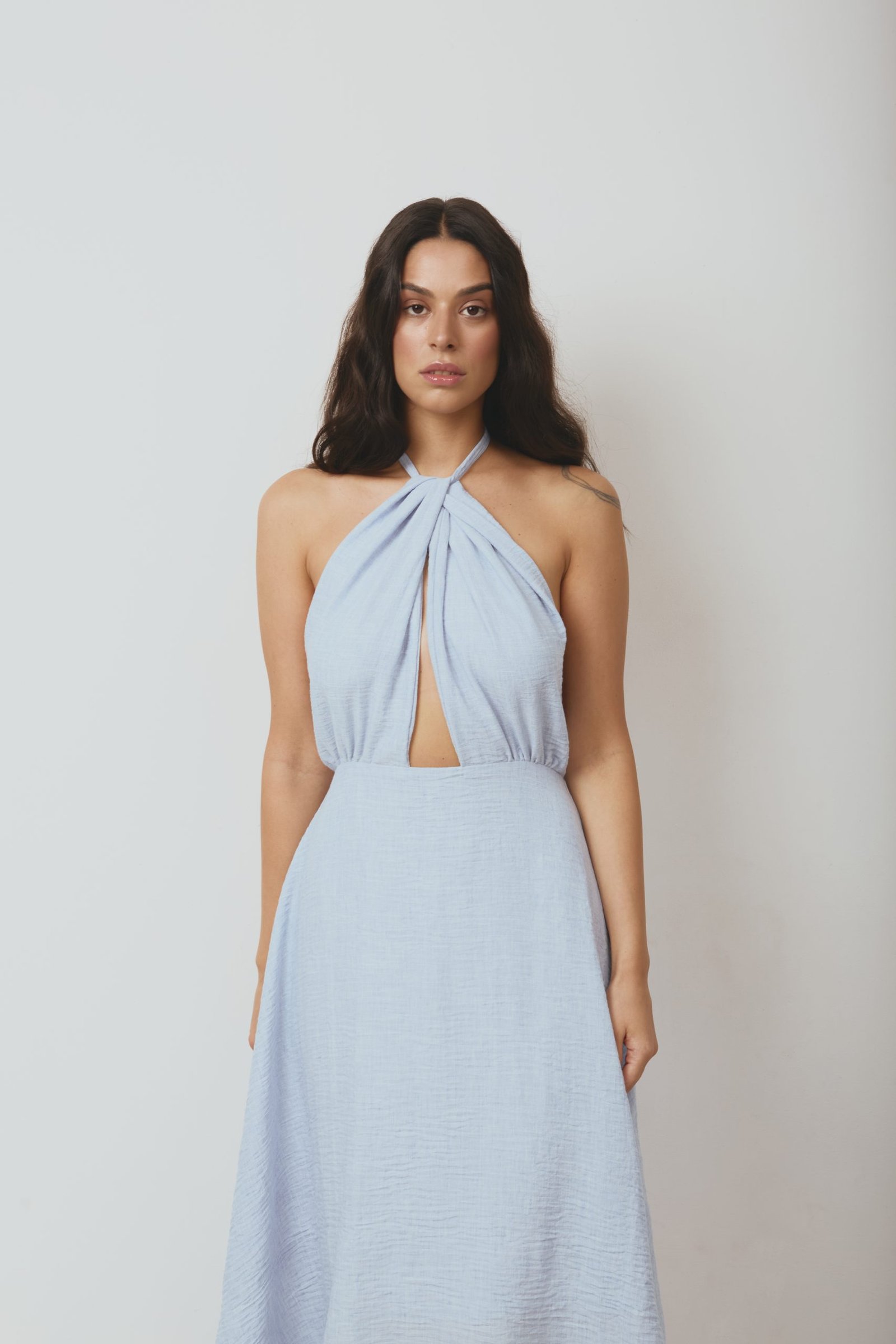 Baby blue linen twisted dress