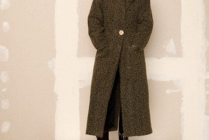 შავი შალის პალტო ოქროსფერი დეტალებით