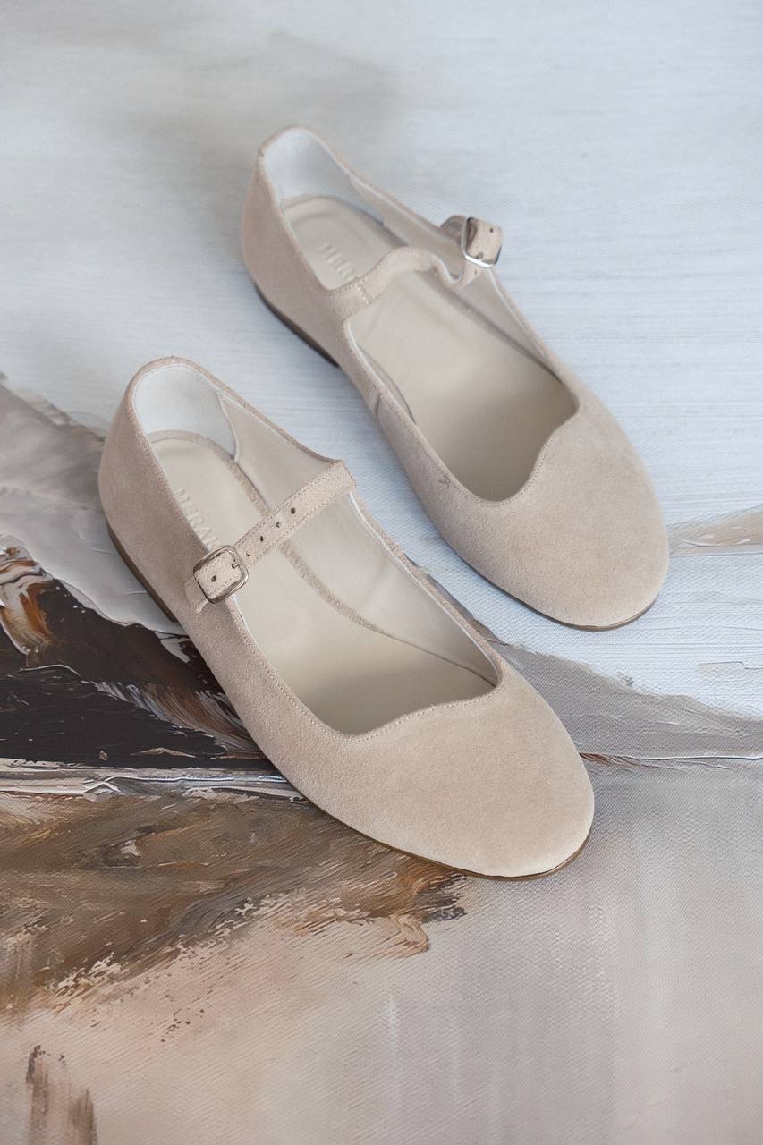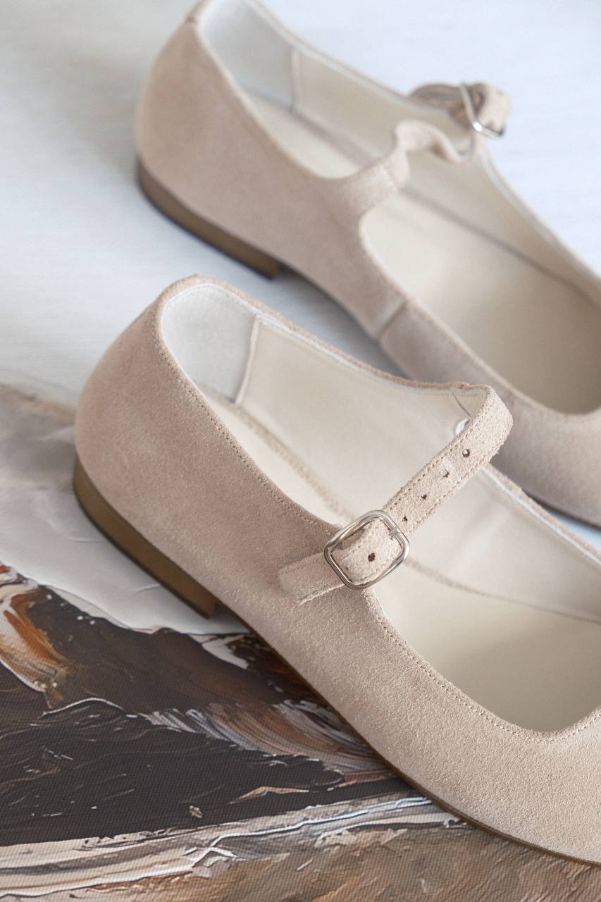 Creamy suede mary janes with wavy cut