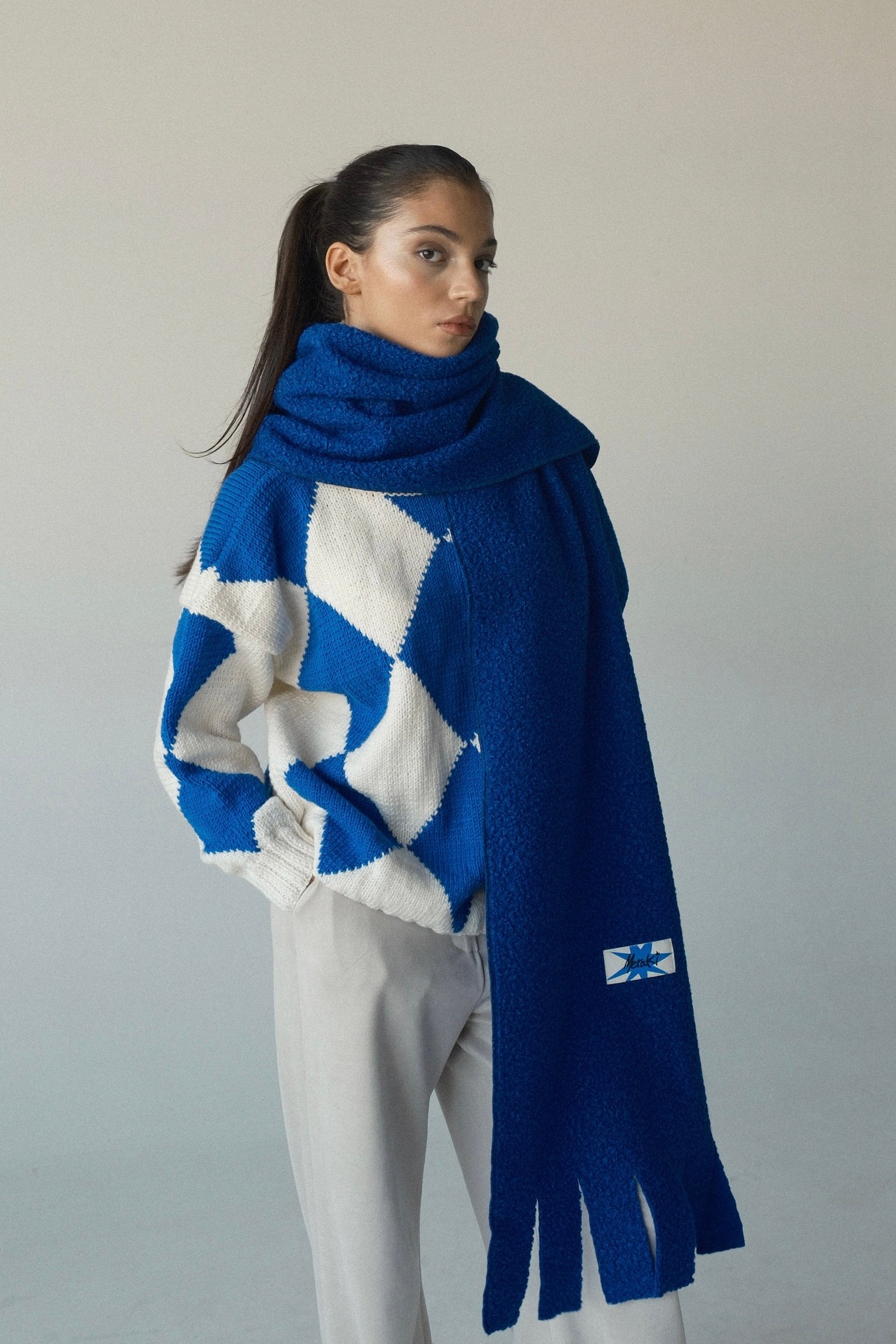Electric blue BOUCLÉ scarf