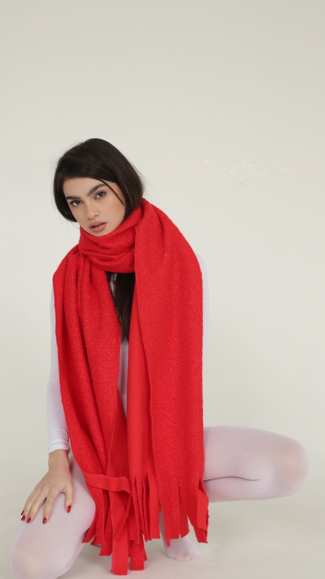 RED BOUCLÉ SCARF