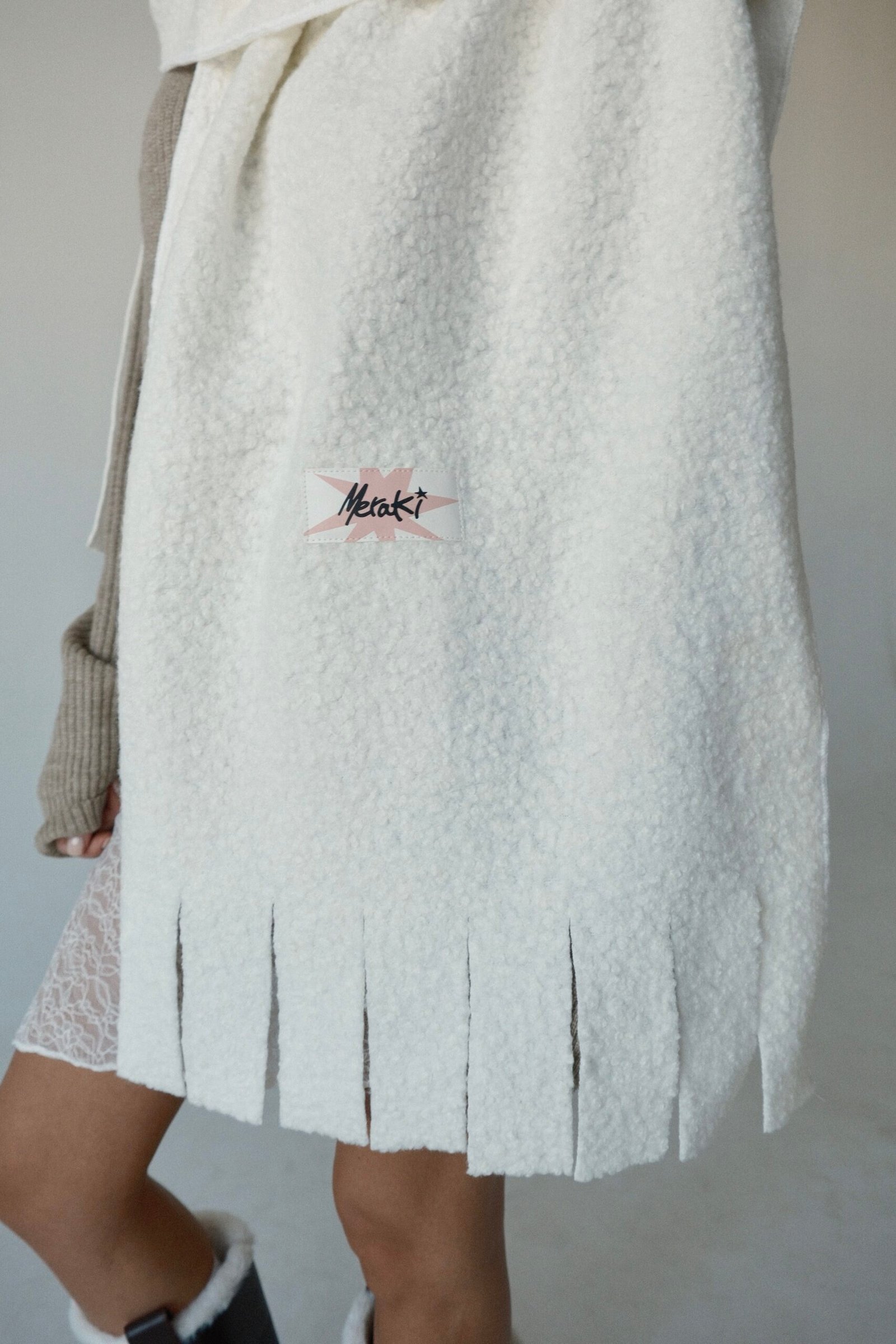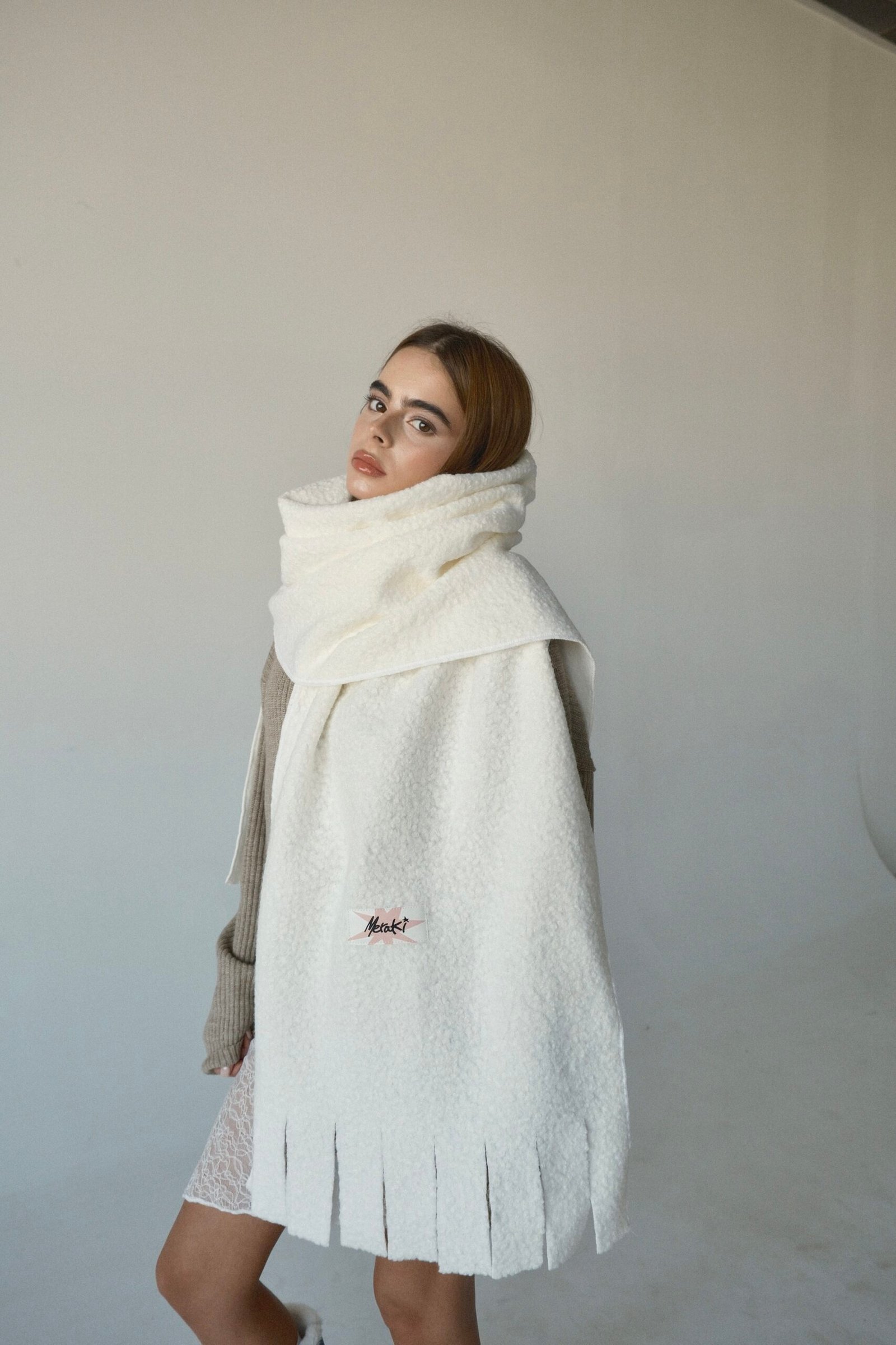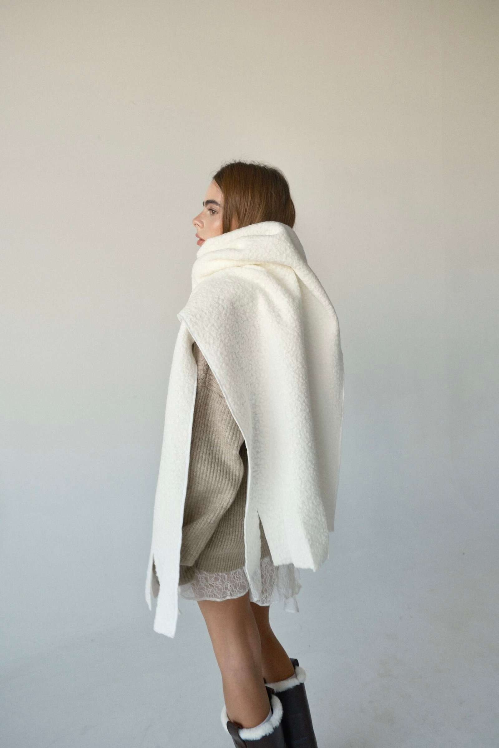 WHITE BOUCLÉ SCARF