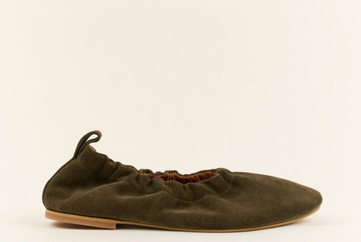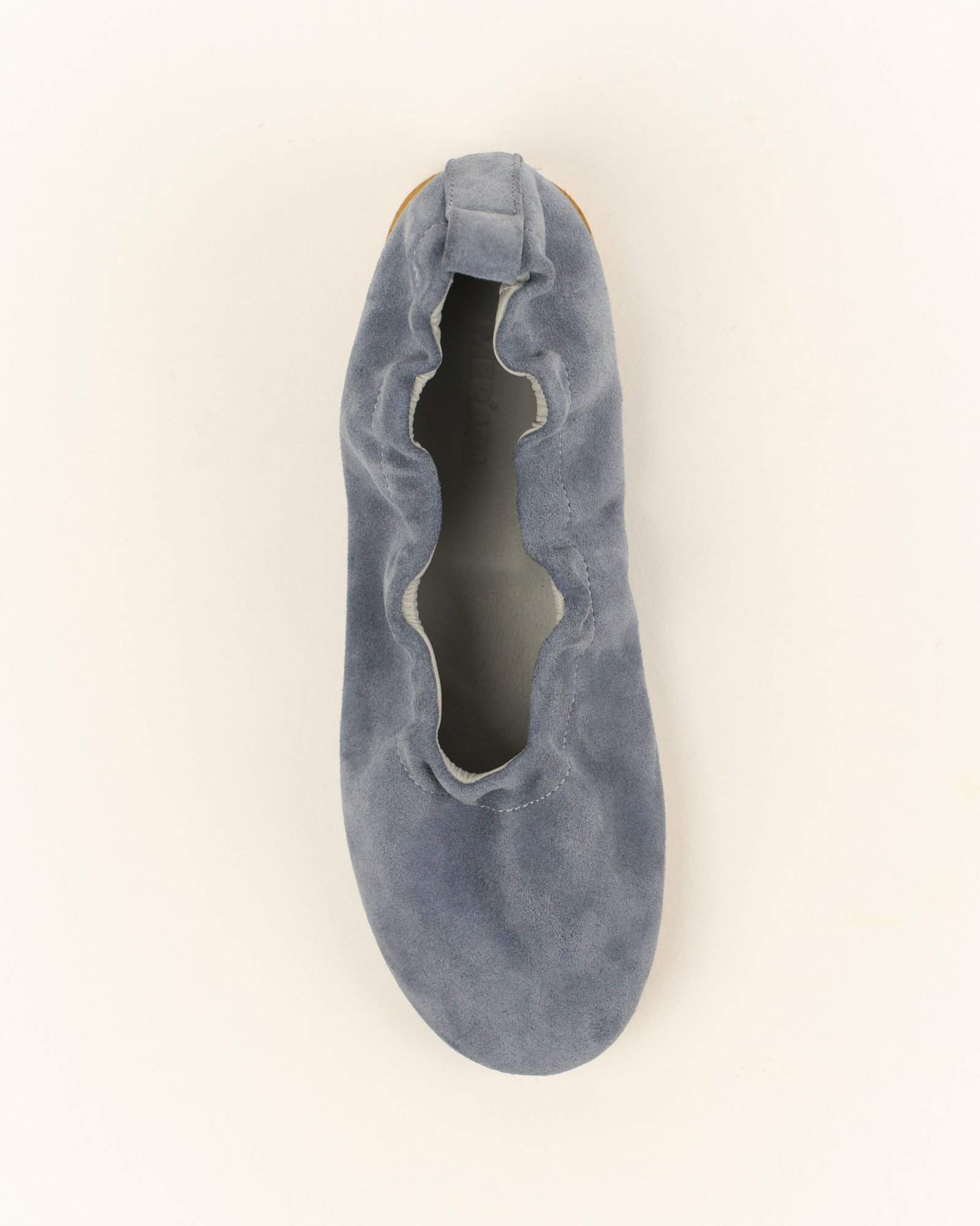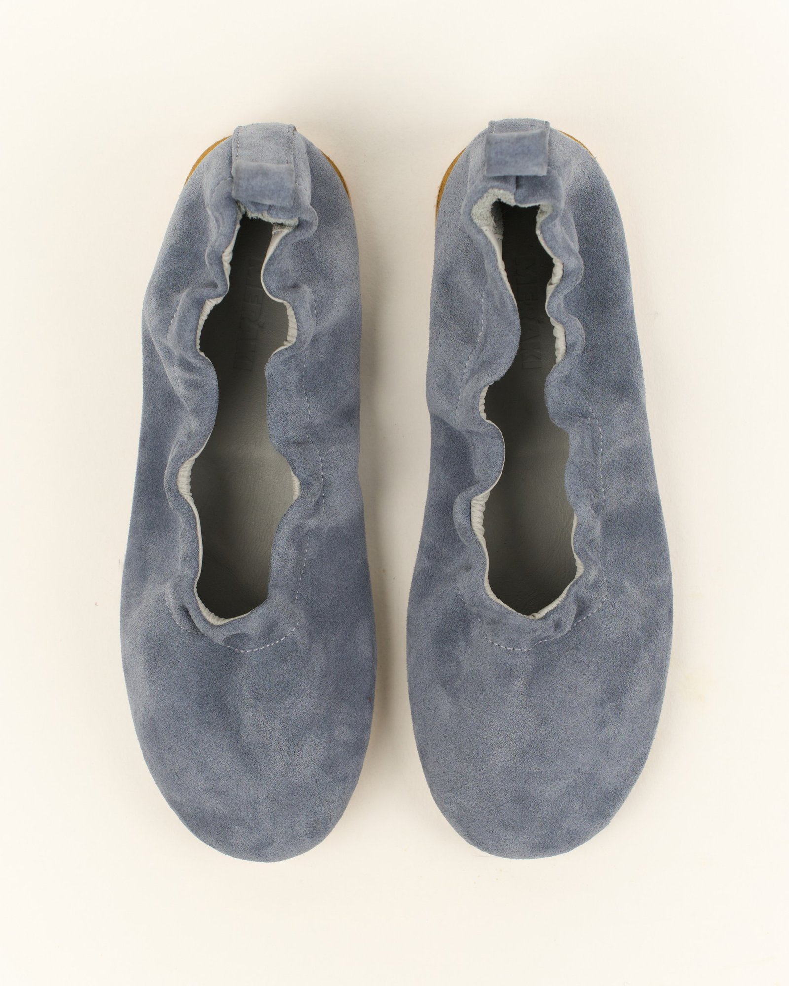 Soft suede ballet flats designed with a gently gathered, wave-cut opening that naturally hugs the foot for a secure, flexible fit. Lined with natural leather for breathability and comfort, the minimal silhouette is finished with a rounded toe—an effortless choice for everyday wear with a refined, modern feel.