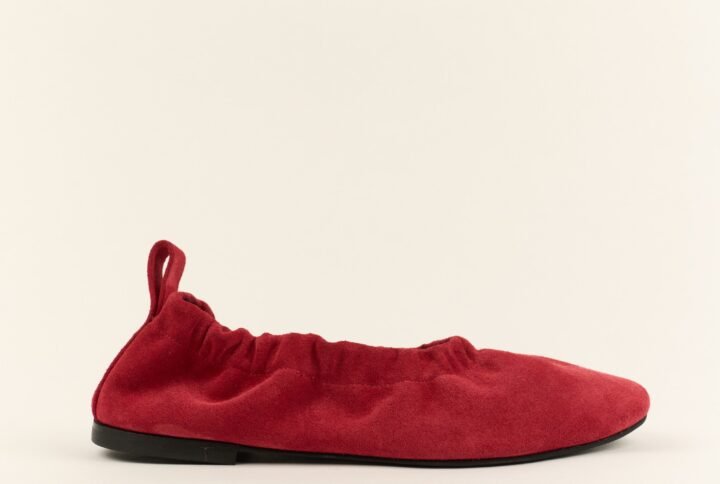 Soft suede ballet flats designed with a gently gathered, wave-cut opening that naturally hugs the foot for a secure, flexible fit. Lined with natural leather for breathability and comfort, the minimal silhouette is finished with a rounded toe—an effortless choice for everyday wear with a refined, modern feel.