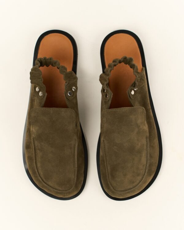Khaki scrunchie mules